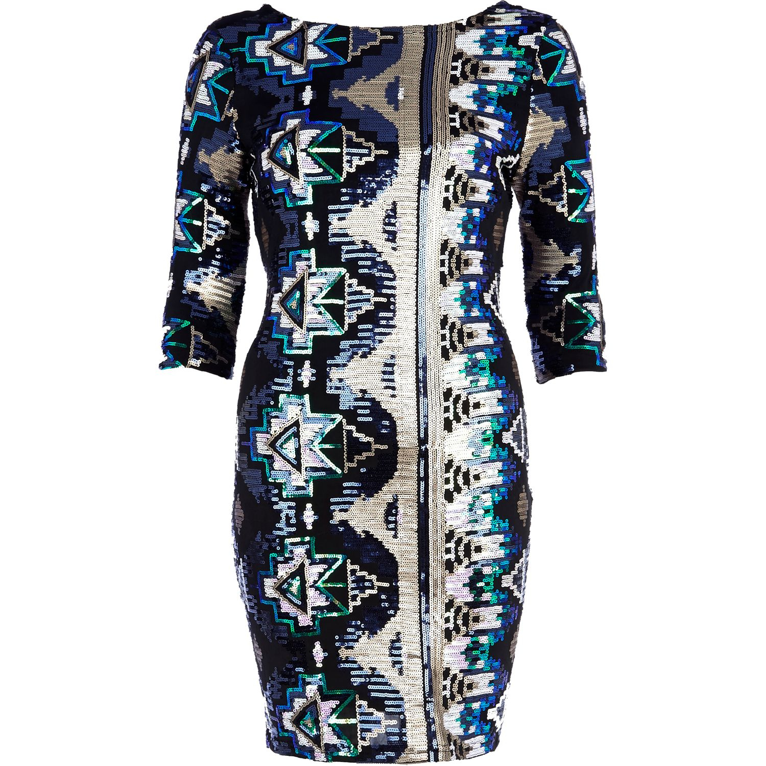 Image Name: River Island Green Aztec Sequin Bodycon Dress in Green